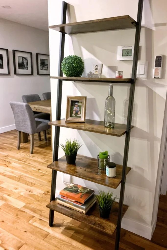 Ladder-style shelves bring a trendy, relaxed vibe to small apartments. Their vertical design allows you to store multiple items without taking up much width, making them ideal for tight spaces.